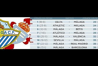 El Celta será el rival de la primera jornada para el Málaga. La última jornada de Liga nos depara una visita al Barcelona.