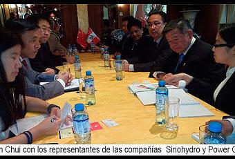 “Hemos tomado conocimiento que estas gestiones marchan por conducto regular y serán promovidas al más alto nivel, consolidándose hasta antes de la visita del presidente de China al Perú”, sostuvo Chui Mejía.Igualmente, sostuvo un fructífero diálogo con el director general de la Comisión Nacional de Desarrollo y Reforma Wu Gong Liang, quien mostró amplia predisposición para priorizar el financiamiento de carreteras y ferrocarriles en el territorio nacional. Cabe destacar que este importante encuentro tuvo lugar gracias a la gestión directa del embajador de Perú en China, Juan Carlos Capuñay Chávez.