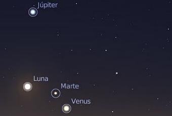 Arriba: Izquierda: simulación del cielo de Buenos Aires en el día 29 de mayo a las 07:00 a.m. Centro: 30 de mayo, misma hora. Derecha: 31 de mayo, misma hora. Crédito: Stellarium/Espacio Sur.Los planetas visibles son Júpiter, Marte, Venus y Mercurio y podrán ser observados con diversos telescopios desde el parque del Planetario Galileo Galilei de la Ciudad de Buenos Aires de forma gratuita.