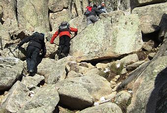 Estamos subiendo entre rocas hacia el Jardín de la Campana. La Pedriza está repleta de senderos curiosos donde las dificultades se superan con pericia, ánimo y mucho respeto a la naturaleza.Sobre la ladera, al otro lado del Arroyo de los Poyos, ha quedado el refugio Giner y Peña Sirio, el Chozo Kindelán sobre esta ladera, el Pájaro imponente roca de escalada, la vereda sinuosa y escondida que lleva hasta el Cáliz… Comienza la subida más abrupta hacia el Jardín de la Campana, arropado por los riscos conocidos como La Vela, El Pajarito, La Campana,manos y pies para aferrarse a los pasos conocidos y expuestos. Enjugo el sudor de la subida con la belleza del remanso en cada nuevo amplísimo escalón.