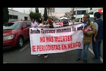 La tarde de ayer 18 de mayo, un grupo de periodistas en su mayoría corresponsales de Texcoco, marcharon desde las oficinas regionales del Gobierno Estatal hacia el jardín municipal, en la defensa de sus justas demandas de seguridad, así como que por parte de las autoridades correspondientes, se salvaguarden las garantías que permitan realizar su trabajo.Al mismo tiempo, se pronunciaron por el homicidio del periodista Javier Valdez, el más reconocido, el más premiado y “el más protegido” dicho por quienes lo conocieron de cerca; colaborador de La Jornada y fundador del semanario Ríodoce, acaecido el pasado 15 de mayo del año en curso, en Sinaloa.Al término de la marcha, realizaron un mitin en el kiosko del jardín municipal, donde expresaron su sentir respecto al ambiente de indefensión donde realizan su trabajo. En el acto, hicieron del conocimiento a la ciudadanía de las demandas dirigidas a las autoridades, pidieron que la comunidad se solidarice con cada comunicador que tengan cerca, a fin de preservar el derecho a estar informado, al mismo tiempo, señalaron que es más que necesario que las autoridades, municipales como estatales y federales, realicen acciones concretas ya que no es posible seguir con paliativos y remedos de justicia que nada más laceran las heridas del gremio periodístico. También se hizo el exhorto a los candidatos a la gubernatura del estado de México, a que de verdad tomen con seriedad leyes que contemplen la protección a periodistas y que no sea mera ocurrencia de campaña.Ante el altar elaborado con mantas, pancartas, veladoras y flores, se hizo un pase de lista de los últimos siete periodistas asesinados en lo que va de este año, ya que en el sexenio del actual presidente de México, se cuentan ya 36 casos impunes por el asesinato de periodistas. De las opiniones vertidas en el evento, coincidieron en que no guardarán silencio a pesar de los embates a la profesión de informar.