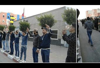 Los manifestantes mostraron de esta forma su determinación de seguir exigiendo el derecho al empleo y contra la discriminación que sufren en los territorios ocupados, donde los colonos marroquíes ocupan casi todos los empleos disponibles.