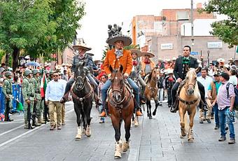 Las calles se llenaron de color y emoción con la presencia de 109 vehículos y 57 caballos, que formaron parte del contingente. Los espectadores se deleitaron con la presencia de miembros de la Asociación de Charros del Estado, motociclistas de la Guardia Nacional, la Secretaría de Seguridad y Protección Ciudadana del Estado, agrupaciones educativas, fuerzas militares, cuerpo de bomberos, Protección Civil Estatal, Cruz Roja, entre otros.