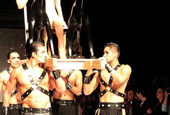 Esperaba mucho ver la colección de Elfer Castro y debo decirles que la puesta en escena fue bastante osada y exótica :) De hecho no verles el rostro a los modelos le daba un toque más misterioso y a la vez se podía interpretar como que fueran maniquís usando los diseños.La colección por lo que Elfer comentó en días pasados ha sido trabajada con algodón orgánico, lo cual es bastante difícil , ya que lleva meses de preparación, de hecho es un algodón que no se trata con pesticidas ni agentes contaminantes *mi querido Amaro Casanova me explicó mejor. Un algodón bastante ecológico a mi entender y que usaban en las culturas antiguas del Perú. (mochica)