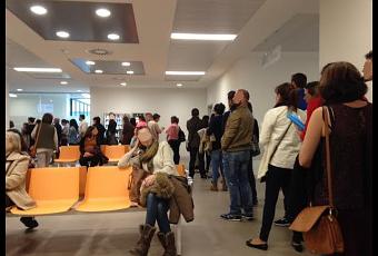 - En dicha sala no había nadie, según pude observar y oír (puerta abierta ) las dos responsables estaban tomando su merecido desayuno, pero ¿Deben ir todos a la vez teniendo en cuenta una sala de espera con aproximadamente 50 personas?. No culpo por ello a los trabajadores (que están haciendo uso de su merecido descanso),sino a los responsables superiores o supervisores por permitir dicha situación y generar una espera, que sólo en esa consulta era de más de 10 pacientes.