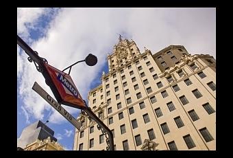 En esta imagen podemos apreciar la Red de San Luis con la entrada al Metro en el cruce con Calle Montera.