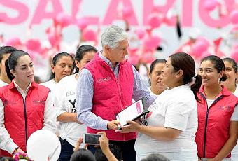 Acompañado por el Secretario de Desarrollo Social, Eric Sevilla Montes de Oca, el mandatario estatal destacó que el Salario rosa es un programa que nació para reconocer el trabajo y el sacrificio que realizan las amas de casa los 365 días del año.