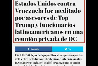 Un grupo de expertos del 'think-tank' estadounidense Centro de Estudios Estratégicos e Internacionales (CSIS, por sus siglas en inglés) organizó a principios de esta semana una reunión secreta sobre el "uso de la fuerza militar en Venezuela", aseguró a RT este domingo el periodista de investigación estadounidense Max Blumenthal, tras publicar un artículo en exclusiva al respecto en el portal Grayzone el día anterior.Blumenthal obtuvo una lista de verificación de participación en la mencionada mesa redonda denominada 'Evaluación del uso de la fuerza militar en Venezuela', organizada por el mencionado centro con sede en Washington D.C., que incluye a varios funcionarios y militares de EE.UU. y Sudamérica.