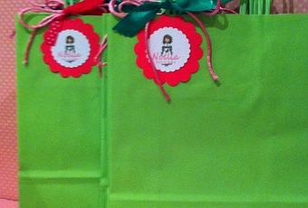 Estas bolsitas en verde decoradas con rosa fuerte y personalizadas servirán para poner los detalles de los invitados dentro, y se los puedan lleva cómodamenteDetalle de comuniónDetalle de comunión
