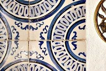 Uno de los frentes de la cocina donde esta la ventana tiene esta maravilla, unos azulejos antiguos en azules