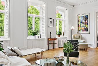 Supongo que la alternativa de algo así si vives en un piso no existe, pero bueno, a lo mejor podríamos conformarnos con las vistas y puede que esta vivienda que os enseño hoy tenga algo de todo eso. A primer golpe de vista lo que menos me ha interesado ha sido la decoración (que tampoco está nada mal). Los tres grandes ventanales del salón con una trabajada carpintería, contraventanas interiores y la imagen de los frondosos árboles de fondo han sido lo primero que he visto. Casi he sentido el frescor de una de las ventanas abiertas y todo :) Los detalles de obra en este piso son espectaculares, no sólo las ventanas, las puertas dobles en muchos casos, también están rodeadas de bonitos marcos, toda la carpintería es realmente extraordinaria, el suelo de roble, la cocina, encimera, etc. No quiero pasar por alto mencionar las molduras de escayola y los rosetones elementos difíciles de integrar en muchas vivienda pero que aquí lucen y no están en absoluto fuera de lugar. ¿Qué pensáis? ¡Feliz lunes!