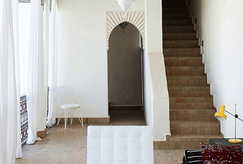 Cada rincón de este riad nos parece más espectacular que el anterior, en cada estancia encontramos un elemento decorativo que nos llama la atención y nos cautiva. Su propietaria acertó en las diferentes combinaciones de textiles, materiales y texturas, utilizando el blanco como base se colocaron de forma casi casual cojines, alfombras, mesas y lámparas, convirtiéndose en una lección de la decoración al detalle.