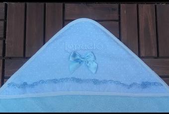Para Ignacio, una toallita de capa muy elegante en tonos blancos y celestes.