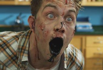 En el aula de castigo hay otro chaval, que se encuentra mal porque tiene una herida en la mano. Según él es la mordedura de un vagabundo (lo más normal) y tarda cero segundos en convertirse en un zombie, y los demás en identificarlo como tal. El nerd y la gótica se saben todas las pelis de Romero y similares of the dead surgidas tras las suyas. En fin, que de la nada el instituto y cercanías está lleno de zombies hambrientos de tripas y ellos encerrados.