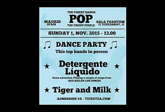 Detergente Líquido y Tiger and Milk juntos en Madrid.Madrid espera la llegada de Detergente líquido, una fiesta un domingo por la mañana, perfecto para las cañas y para conocer y reconocer los acordes y las letras de los temas de su disco Ponte en lo peor, llámame el lunes. No estarán solos, Tiger and Milk será la otra banda que nos hará mover el esqueleto. Una jornada especial en el Dance Party, pop y mucho más en una sala especial, desde el sur y desde Madrid, se unen fuerzas con un buen propósito.