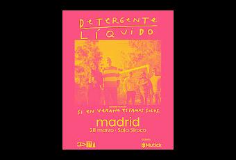 En marzo podremos ver a Detergente Líquido en un directo en Madrid donde presentarán sus nuevos temas. Siroco es el nombre de la sala donde podremos ver a Detergente Líquido en directo, una fecha presentando disco. Detergente Líquido quieren presentar Si en verano estamos solos en Madrid, una gran fecha donde podremos descubrir este disco - libro que se puede adquirir en pre-order. En este caso podremos ver su puesta en escena en Siroco para demostrarnos esa magia pop que siempre han tenido. Una fecha muy recomendada.