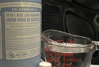 - ½ taza de Jabón de castilla líquido. Yo uso la marca Dr. Bronner