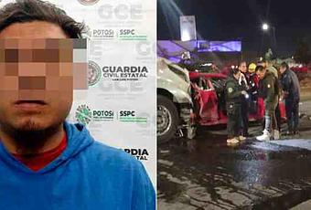 San Luis Potosí, S.L.P., un hombre fue detenido por agentes de la Guardia Civil Estatal (GCE) luego de que presuntamente ocasionara lesiones a tres personas, incluyendo a una oficial de esta corporación estatal, al impactar su unidad de carga contra dos vehículos particulares.