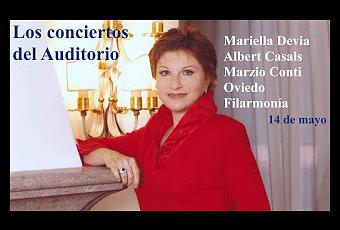 Sábado 14 de mayo, 20:00 horas. Conciertos del Auditorio, Oviedo: Mariella Devia (soprano), Albert Casals (tenor), Oviedo Filarmonía, Marzio Conti (director). Obras de Donizetti, Bizet, Gounod, Massenet, Rossini y Bellini.