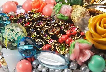 El colorismo exótico en un exceso de materiales muy variados, desde las piezas de strass hasta las rosas de resina, desde las cuentas de metal dorado hasta las rosas de cristal, piedras semipreciosas, cadenas doradas,.......cualquier objeto nos sirve para combinar unos y otros, como si de un lienzo se tratara, para crear estos collares XXL cuyo resultado final es la elegancia en su más alto grado.