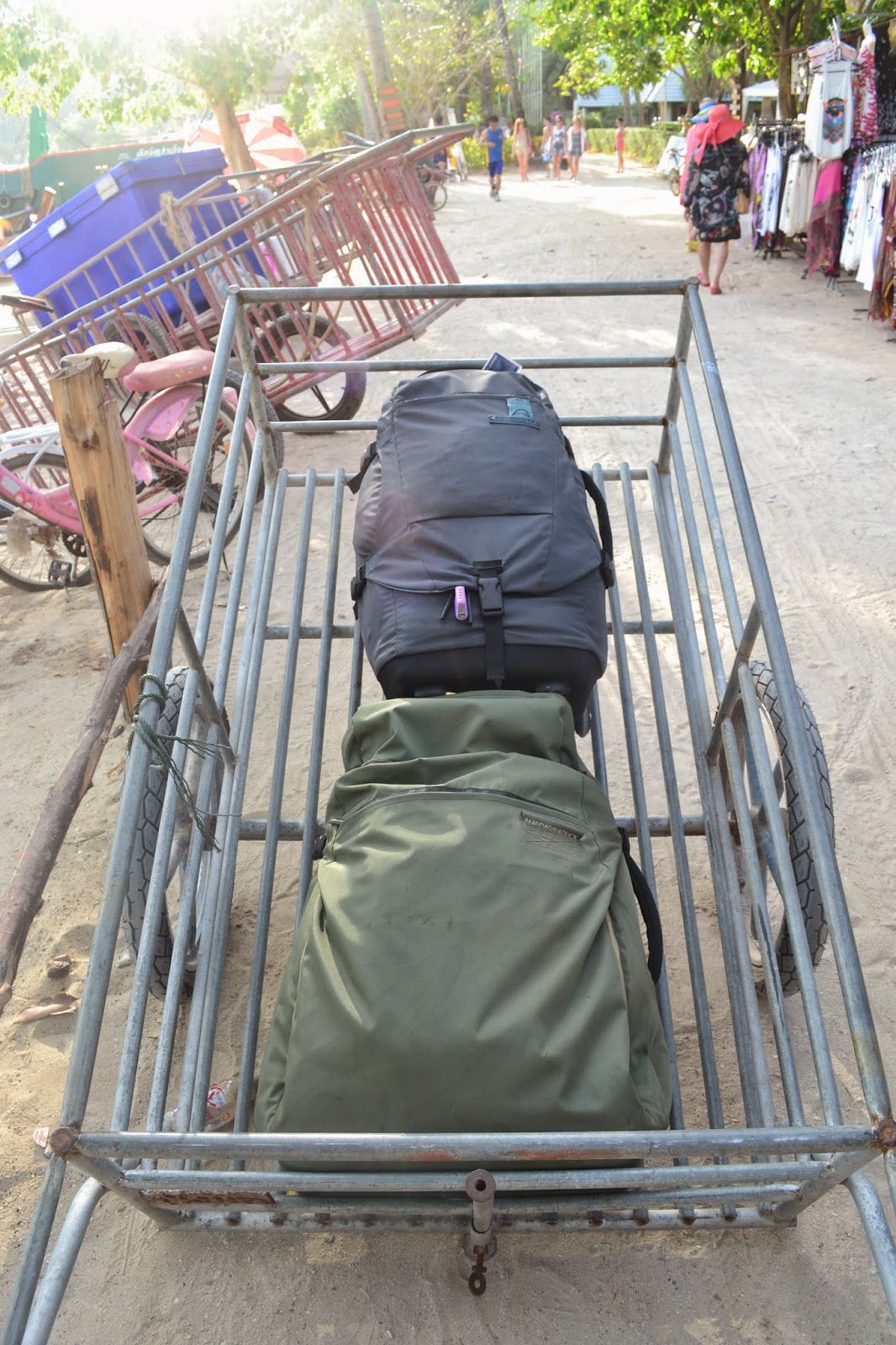 Una vez en Tonsai Pier, debimos pagar una pequeña tasa de desembarco. Luego, encontramos al encargado de nuestro hotel, quien monto nuestros bolsos en un carrito y a señas nos indicó por donde circular.