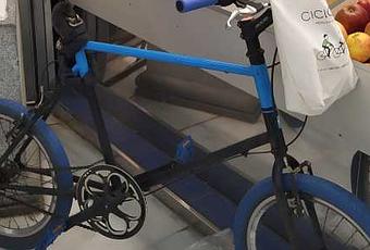 Sin buscar aparcamiento siquiera: un #almercadoenbici al cien por cien, con la bici hasta la misma frutería. Y con la bolsa del CicloBCN21 en el manillar que es perfecta para estos menesteres.