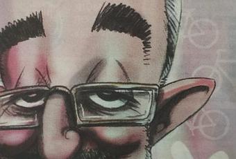 Día 20 de #30DiasEnBici. Sigue la catarata de mucosidades. Cero bicicleta hoy. Facebook me trae un recuerdo de hace siete años cuando fui la «Figura de la semana» en La Nueva España lo que me hizo acreedor de esta caricatura de Mortiner, tan preciada por mi.
