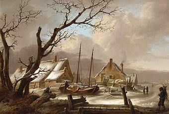 Aunque Jan van Os alcanzó su prestigio como pintor gracias a sus bodegones de flores y frutas, era sin duda un excelente paisajista, como podemos apreciar en este hermoso paisaje nevado.