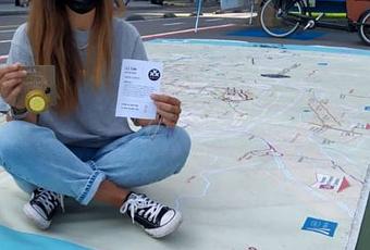 - Mapa intermodal gigante en lona y elementos para jugar al Gijón Bus & Ride