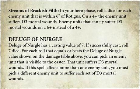 No se mucho de AoS porque la verdad como juego no me interesa gran cosa, pero esta claro que GW esta poniendo cada vez mas y mas interés en reforzar las filas de Nurgle para este juego y para W40K de paso. En el pasado salio bastantes cosas para Khorne y luego para Tzeentch, pero creo que hasta el momento, los que se llevan la palma en tema de refuerzos es Nurgle: Codex para la Guardia de Muerte en W40K con una gama propia nueva (Mas las cajas que comparten con los Primaris), ahora este suplemento en AoS, ademas de compartir una caja de juego con los Stormcast de Sigmar, mas figuras de refuerzo para Demonios.