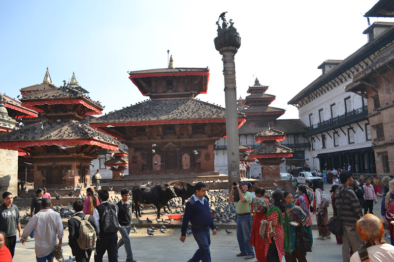 La primera parada fue Hanuman Doka, templo muy Sagrado, cuya entrada está prohibida para los no Hindues, aun cuando se puede apreciar la estatua del Dios Mono, erigido por un gobernante Malla en el año 1672 d.C.