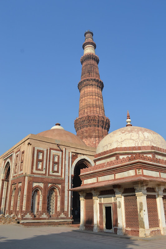 Nos recibió la obra maestra de la arquitectura Mogol, el imponente Qutub Minar, que se eleva orgulloso en arenisca roja y mármol por los 72.5 metros de altura, y 14 metros de diámetro den su ancha base. En su interior cuenta con 379 escalones internos, siendo el Minarete más alto de India, indestructible ante temblores, rayos y el paso del tiempo.