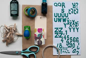 "Materiales: letras, pinzas, papel kraft, un tag, restos de papel de scrap, un reno, washis y pintura en spray o tinta china.