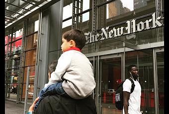 El día 4 estando en Long Island muy temprano en la mañana (como siempre tempraneros) a Carlos se le ocurrió la gran idea de darle un toco más exótico a nuestra aventura: que tal si no solo vamos a Manhattan si no que también nos quedamos a pasar la noche? Y como mi esposo es un viajero intrépido no pasó mucho tiempo en conseguirnos un cuarto de hotel en el Fairfield Marriott Time Square, oh Si! al lado de la acción.Empacamos liviano para los tres y nos fuimos en el carro hacia Manhattan, es 1 hora de camino, el tráfico al entrar a la ciudad es muy fuerte y entre los edificios se pierde la señal del GPS, pero como es una ciudad bien trazada lo importante es saber en cual calle está el hotel, así que nos fuimos hacia la calle 40 donde estaba nuestro hotel, dejamos el carro en Valet Parking, hicimos check in, dejamos las maletas y nos fuimos a caminar.