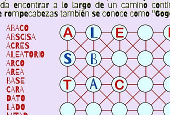 Navegando por la red encontré un juego de palabras que es bastante interesante: El Powgi. El reto: Colocar las letras de manera que cada palabra se pueda encontrar a lo largo de un camino continuo. Este rompecabezas también se conoce como Gogen.