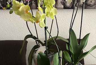 Hola Hola!! Que tal? Como estáis??Os cuento!! Aprovechando que el primero de Mayo es el día de la madre, aunque nosotros lo celebramos el día anterior.Agrandamos la familia de Orquídeas, en este caso con una Orquídea Blanca y una Orquídea Verde (para mi el color es verde, no sé si alguien lo verá amarillo).Teníamos fichada la blanca en una tienda de chinos, a un precio insuperable 11,90€ (solo tiene una vara), así que mi marido dijo, la compramos... y un poco antes del día 30 se compró..En esto que vamos a Consum a comprar unas cosas.. y Sorpresón... había orquídeas por 9,99€, y mi marido dijo, elige una que va "pa la saca", y elegí la verde.., había muchas moradas, pero ninguna tan insuperable como la mía, así que para casa..