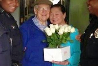 Una angustiada Doris Amrine se sintió aliviada al ver a su esposo de 60 años caminando en compañía de los policías, pero su alivio se convirtió en alegría cuando él le entregó las flores que él había comprado con ayuda de los agentes.