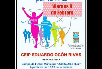 Todo el alumnado, profesorado y familias acudimos al campo de fútbol de Benamocarra a correr por la Paz.