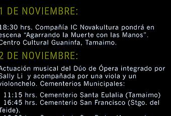 El próximo 1 de Noviembre estaré con mi palabreo en Santiago del Teide, en el Centro Cultural Guaninfa de Tamaimo a partir de las 18:30hrs. "Agarrando la Muerte con las Manos". Entrada gratuita, hasta completar aforo.