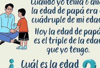 Resuelve este acertijo: Cuando yo tenía 6 años la edad de papá era el cuádruple de mi edad. Hoy la edad de papá es el triple de la edad que yo tengo. ¿Cuál es la edad actual de papá?