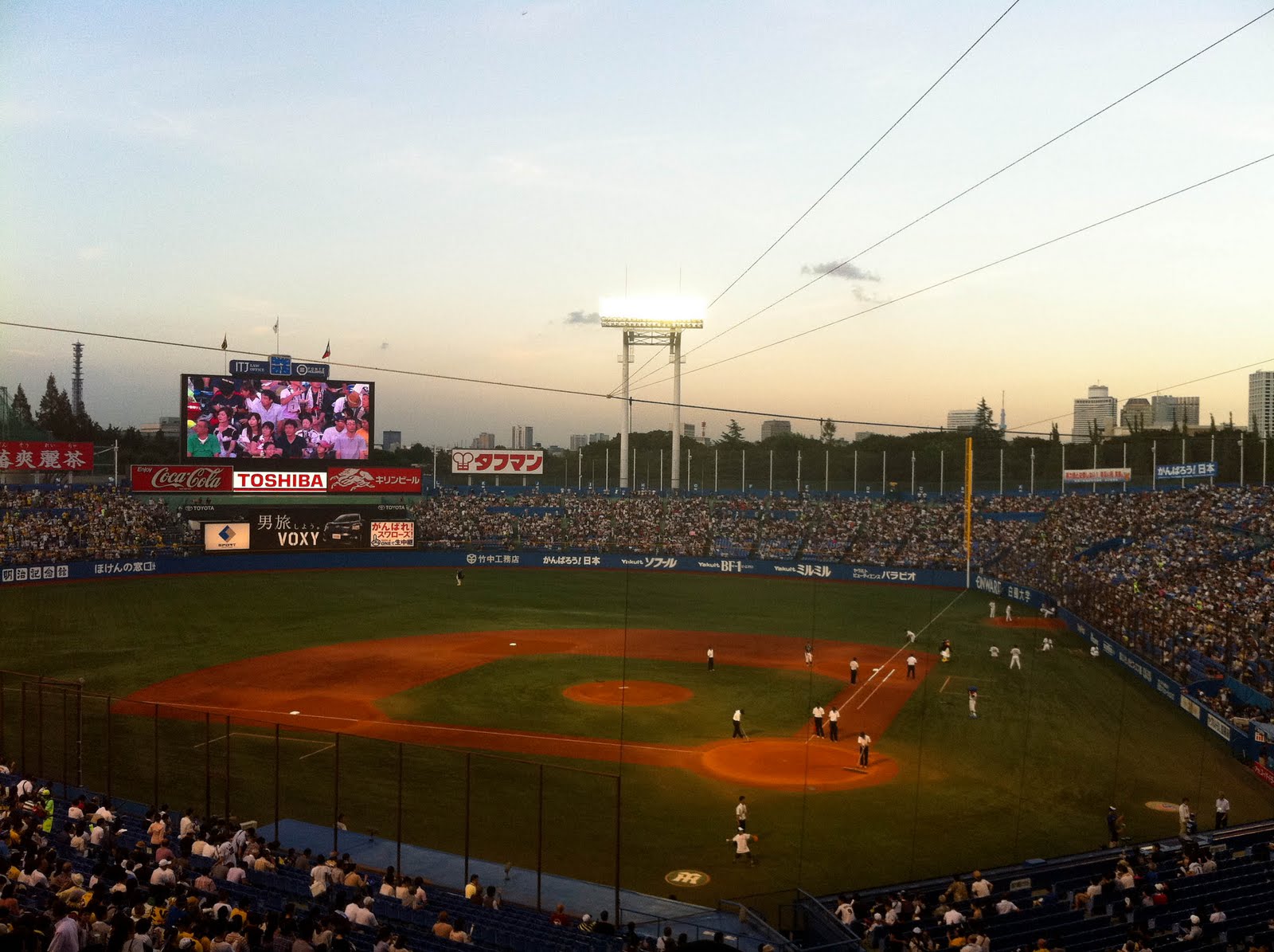 Ya tenía ganas de ver en directo un partido de béisbol, el deporte mas popular aquí en Japón (también les gusta el fútbol, pero las ligas extranjeras) y gracias a una amiga, Yoshiko, una fan de los Hanshin Tigers nos comentó a unos cuantos que si queríamos ver un partido cuando los Tigers vinieran a Tokyo y ahí que nos apuntamos.