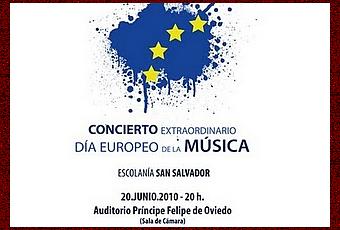 Domingo 20 de junio, 20:00 horas. Auditorio de Oviedo, Sala de Cámara. Concierto gratuito con motivo del "Día europeo de la Música" (Lunes 21 de junio). Escolanía San Salvador (director: Gaspar Muñiz Álvarez) y Pueri Cantores (directora: Elisa García Gutiérrez) de Oviedo.