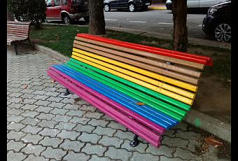 El Día del Orgullo LGBT adquiere un especial protagonismo en España, teniendo en cuenta que se celebra en Madrid el “Worldpride 2017”, popularmente conocido como Orgullo Mundial, un evento fundado por Paul Stenson y organizado por la asociación InterPride para promover la visibilidad y la defensa de los derechos sociales de las lesbiana, gays, bisexuales y transexuales. Foto editada por el Ayuntamiento de Cacabelos: Banco multicolor, Plaza Mayor de Cacabelos (El Bierzo)