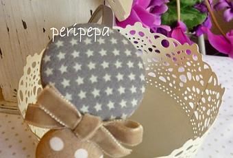 Esta tiene el botón de arriba con una tela que me encanta, de estrellitas grises.