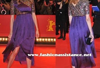 Publicado el 20 febrero 2011 por Guadalupe Cuevas GonzálezDiane Kruger siempre nos proporciona buenos momentos sobre la alfombra roja y el Festival de Cine de Berlín 2011, no ha sido una excepción.La actriz alemana acudió al estreno de "Unknown" con un vestido morado de manga corta, talle alto y la parte superior con estampados, de Chanel, Pre-Fall 2011, de inspiración bizantina, que combinó con unas bonitas saldalias de pulsera negras y bronce y un pequeño clutch negro. Look ganador!