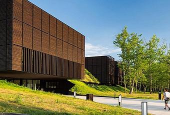 El edificio se favorece de madera local a través del uso del pino marítimo, gracias a la técnica aplicada a los revestimientos exteriores. Esta técnica fue introducida por los miembros del centro de investigación del mismo nombre que reúne a arquitectos, ingenieros, investigadores, industriales y los aserraderos locales, para beneficiarse de la política europea de “clusters”.
