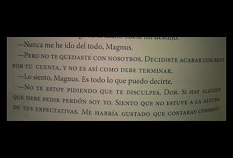 «Llevo casi dos meses fuera de Matter con Leumas y Yeyo y ahora pienso en que nunca le he preguntado por los rebeldes, sus compañeros de armas que me han elegido como símbolo de la insurgencia. Tampoco es que hayamos tenido mucho tiempo para charlar, con tanto entrenamiento y estudio...»