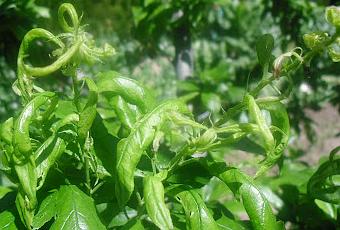 Otra de las variedades habituales de pulgón que aparecen por el huerto, es el pulgón verde, este focaliza sus ataque, sobre todo en los arboles frutales como melocotoneros, ciruelo y sobre todo en los naranjos, como se puede observar a continuación.
