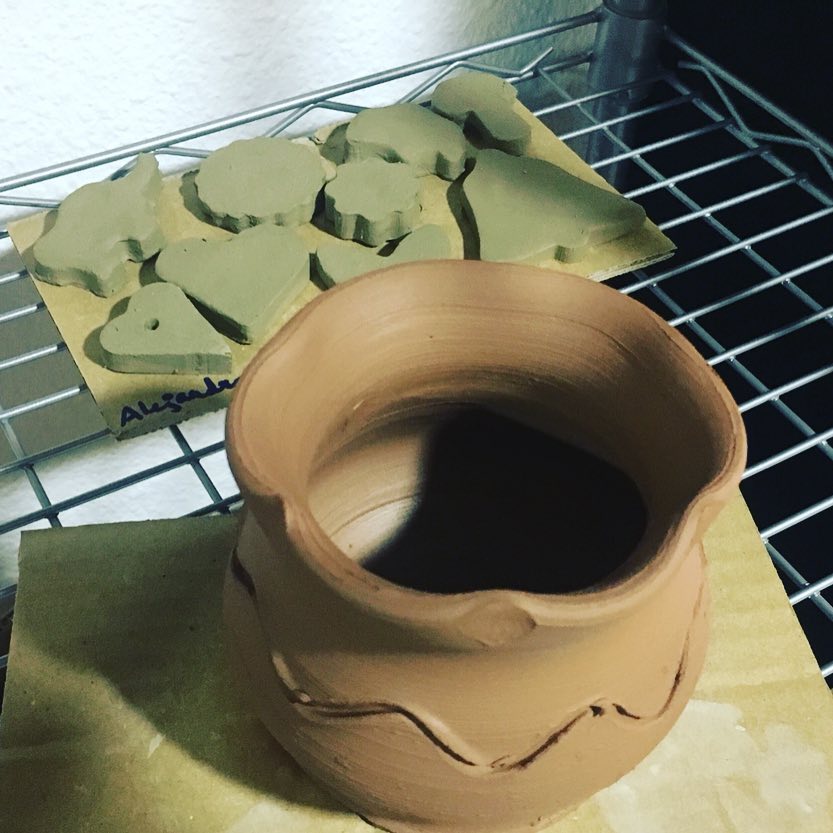 Tanto el viernes como el lunes, Alejandra tuvo Jornadas Culturales, el viernes se apuntó a fango, e hizo en barro el jarrón y esas piezas, también estuvo en Tenis de Mesa, así como en Rubik.