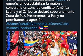 'América Latina y el Caribe se declaró soberanamente Zona de Paz. Preservemos la Paz y no permitamos la agresión', escribió el dignatario en su cuenta en Twitter.